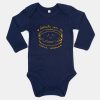 Body per a bebès de màniga llarga de 200gms. Obertura de coll superposada per facilitar posar el body al bebè. Tres clics a la part inferior. Estampació amb tintes ecològiques en un body fet 100% en cotó orgànic.