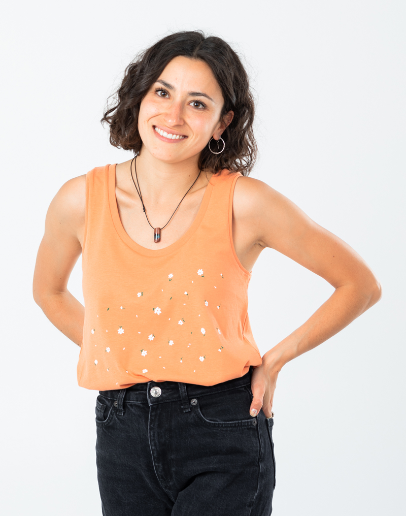 Samarreta sense mànigues de 155gsm fabricada 100% en cotó orgànic. Tall entallat i canalé 1×1 en coll.