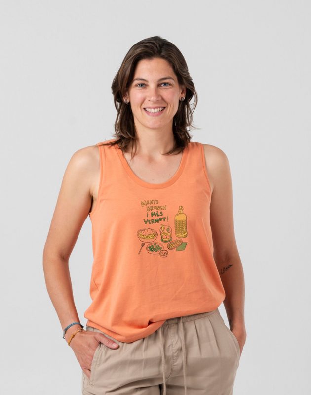 Samarreta sense mànigues de 155gsm fabricada 100% en cotó orgànic. Tall entallat i canalé 1×1 en coll.